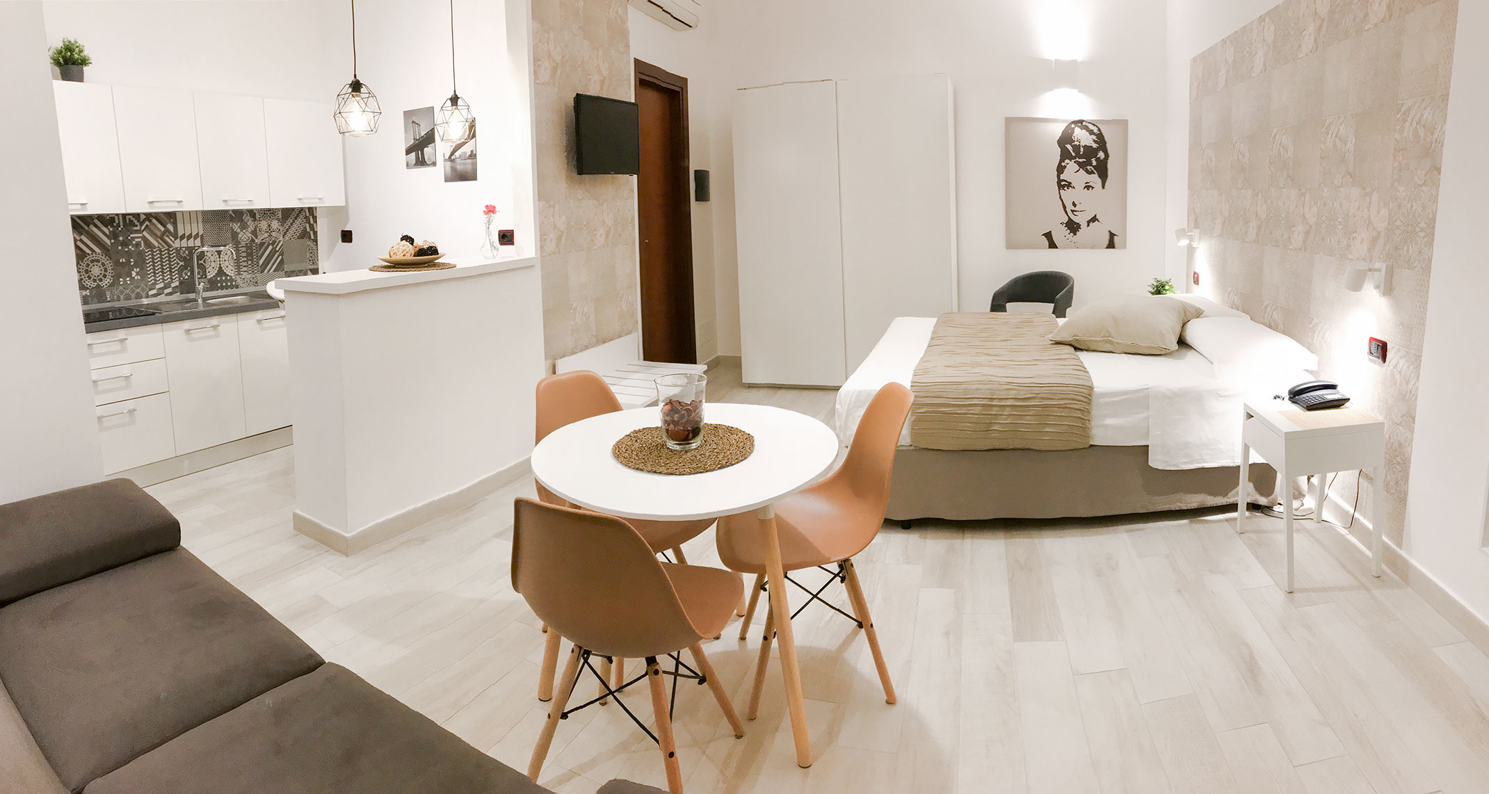Camere nuove e arredate in stile moderno, dotate di tutti i comfort e indipendenti l’una dall’altra. La struttura e’ composta da tre camere da letto; una suite con terrazza e vista sulla città che può ospitare fino ad un massimo di 4 persone; una camera matrimoniale standard con balcone e vista sulla città; una matrimoniale non dotata di vista.